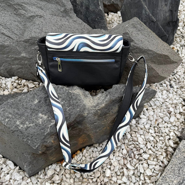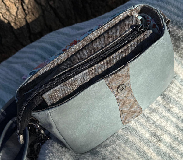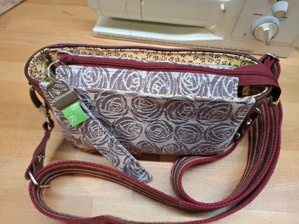 This is a small sized bag with a multitude of options. Essentially 3 patterns in 1. I love options. Sew it with a recessed zipper closure or add a flap. If you like a carry handle add a handle to the flap. Do you like your bag organised? If so - add a zipper pocket divider.